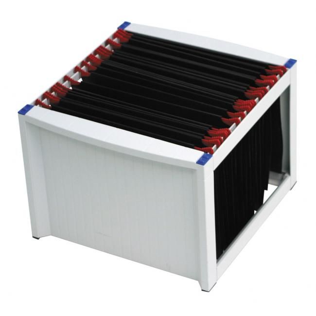 Zásobník vhodný na závesné obaly A4 s prístupom zhora. Jednoduchá montáž, možnosť stohovania. Kapacita cca 40 závesných obalov typu V.