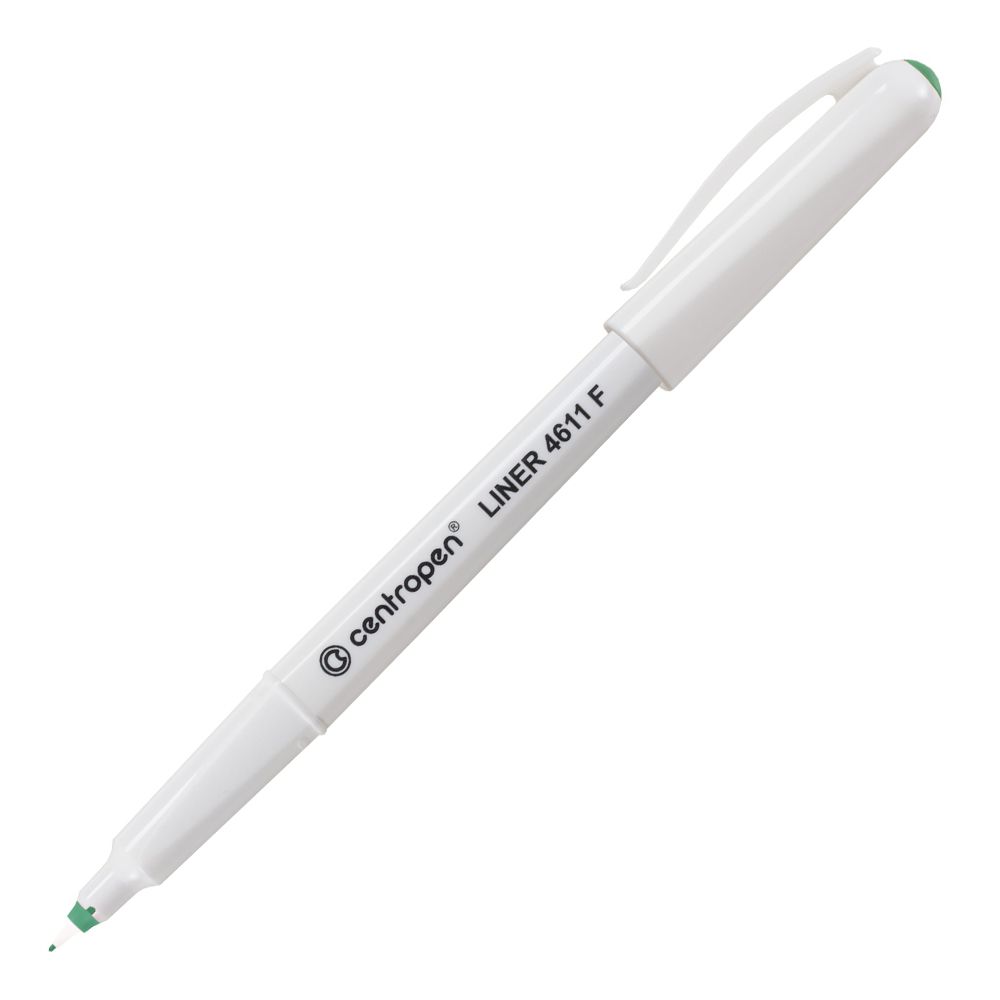 Liner CENTROPEN 4611 je osadený jemným plastickým hrotom. Má široké využitie, určený je na písanie, podpisovanie, jemné kreslenie a skicovanie. Šírka stopy 0,3 mm, dĺžka stopy 1500 m. Farba: zelená.