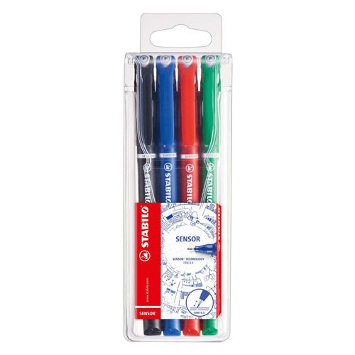 Jednorazový liner. Vláknový hrot v kovovej objímke, telo linera vo farbe atramentu. Ventilačný uzáver vo farbe atramentu so šesťhranným hrotom. Atrament na vodnej báze, odolný voči vysychaniu, bez zápachu, netoxický.dĺžka písacej linky: 500-600mpísacia čiara: 0,4 mmhrot: 0,4 mmdodáva sa v 4 farbách (čierna, červená, modrá, zelená) v balení 10 kusov v jednej farbeideálne na vytváranie farebných poznámok, prácu so šablónou atď.pre použitie v kancelárii, škole aj domácnosti