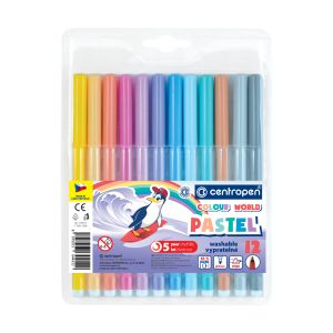 Sada PASTEL obsahuje 12 ks farebných popisovačov v pastelových odtieňoch. Ergo držanie. Valcový hrot odolný voči zatlačeniu. Šírka stopy 1-2 mm. Vyprateľné.