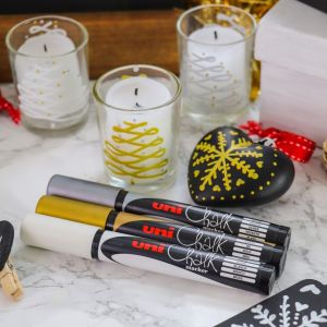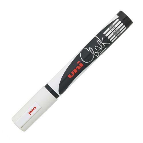 Kriedové popisovače s možnosťou použitia pre priemysel, dekoráciu, informačné tabule a hobby. Na čistých a odmastených neporéznych povrchoch text po zaschnutí odoláva vode a UV, ale je stierateľný vlhkou handričkou. Vhodné na okná, zrkadlá, kovové a plastové povrchy. Hrot guľatý, šírka stopy 1,8 - 2,5 mm. Farba biela.