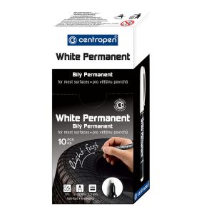 Univerzálny biely svetlostály popisovač s atramentom na vodnej báze, vhodný na väčšinu povrchov. Po zaschnutí odolá oteru, permanentný na poréznych povrchoch. Hrot okrúhly, šírka stopy 1,2 mm.…