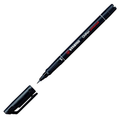 Permanentné popisovače na popisovanie takmer všetkých hladkých povrchov. Nekĺzavá úchytová zóna, praktický klip, bez vrchnáka vydrží až 3 dni. Väčšie balenie 10 ks v jednej farbe. STABILO® OHPen universal Superfine (S) Hrot okrúhly, šírka stopy 0,4 mm. Farba čierna.