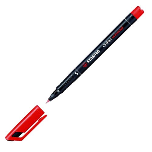 Permanentné popisovače na popisovanie takmer všetkých hladkých povrchov. Nekĺzavá úchytová zóna, praktický klip, bez vrchnáka vydrží až 3 dni. Väčšie balenie 10 ks v jednej farbe. STABILO® OHPen universal Superfine (S) Hrot okrúhly, šírka stopy 0,4 mm. Farba červená.