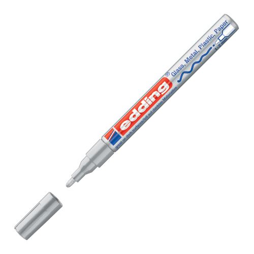 Lakový popisovač s hliníkovým obalom, vhodný pre vodovzdorné písanie, značkovanie a kreslenie na takmer všetky materiály. Hrot okrúhly, šírka stopy 1 - 2 mm. Väčšie balenie 10 ks.Farba: strieborná.