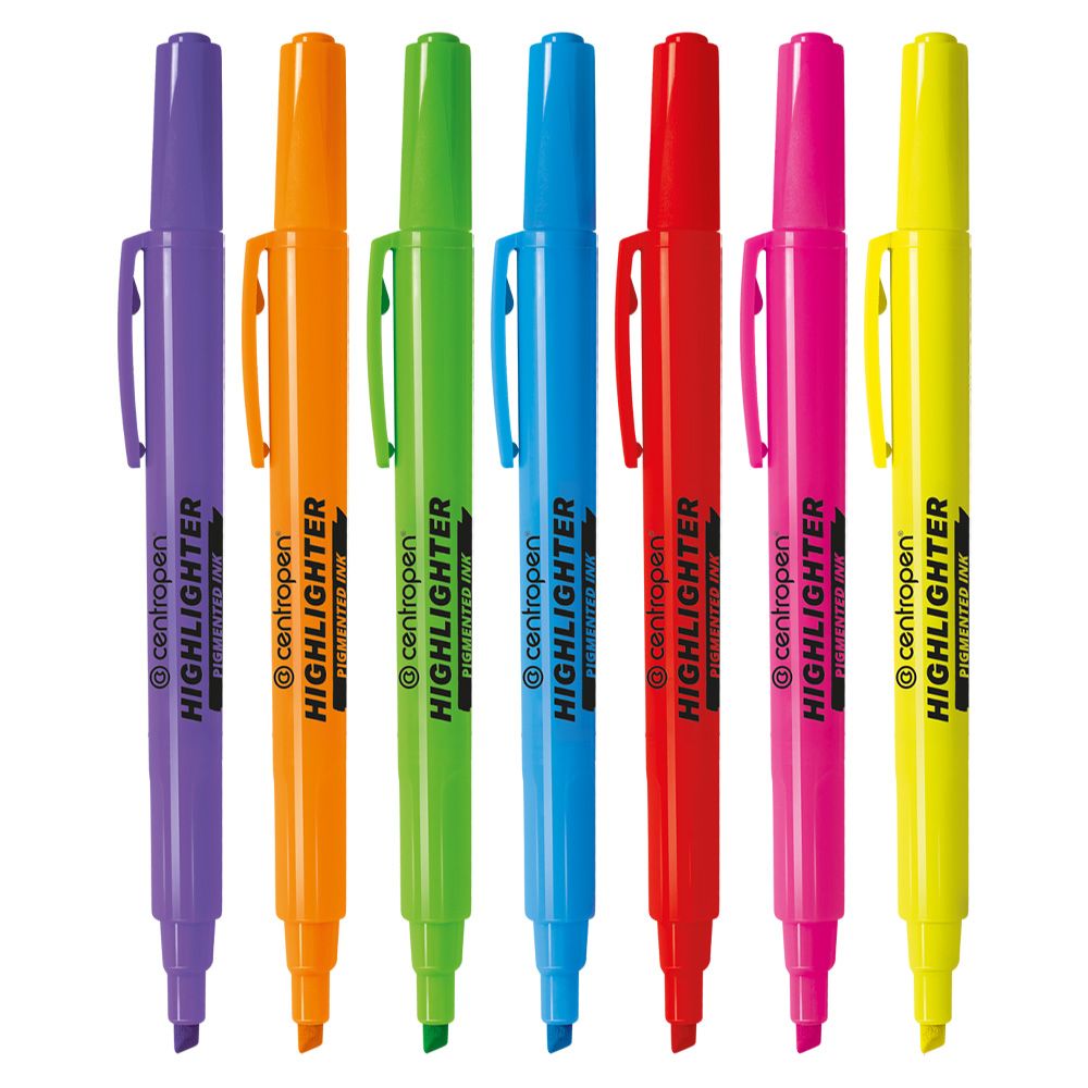 Zvýrazňovač je od značky CENTROPEN, patrí pod kategóriu FAX. Zvýrazňovač má klinový hrot na písanie. Farba tela sa zhoduje aj s farbou atramentu vo zvýrazňovači. To je žltá fluorescenčná farba. Je dokonca obdarený funkciou proti vyschnutiu po dobu 3 rokov. Je vhodný na všetky druhy papiera, dokonca aj kopírovací aj faxovací. Šírka stopy zvýrazňovača je 1 až 3 mm.