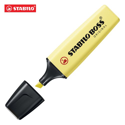 Jedinečný zvýrazňovač v 6 nových pastelových odtieňoch. V 2 šírkach stopy. Vhodný pre prácu s papierom, kópiami a faxom. Vydrží až 4 hodiny bez vrchnáčika a nevyschne. Značková kvalita od vynálezcu zvýrazňovača - BOSS Original je na trhu už od roku 1971. Nezameniteľný tvar zvýrazňovača, ktorý je možné použiť kdekoľvek. Farba žltá.