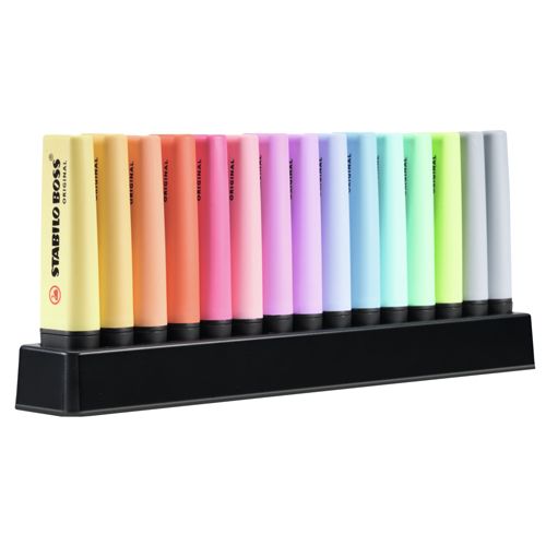 Sada zvýrazňovačov STABILO BOSS ORIGINAL Pastel 15 ks Stolný set so 14 rôznymi farbami