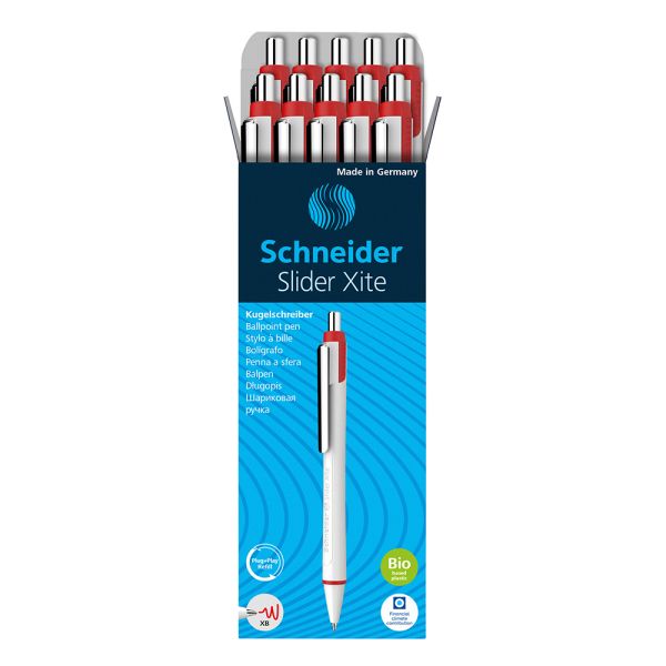 Guľôčkové pero s telom vyrobeným z 90 % z bioplastov. Inovatívna technológia „Viscoglide“ (patent Schneider) zaručuje ľahké a kĺzavé písanie aj po lesklom papieri. Farbu náplne indikuje farba na klikacom mechanizme. Vymeniteľná kovová náplň Slider 710 XB s hrotom z nehrdzavejúcej ocele a dokumentačným atramentom (okrem červenej). Väčšie balenie pera aj náplne po 10 ks v jednej farbe. Farba náplne červená. Náhradná náplň obj. kód SN171002.