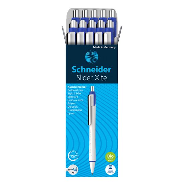 Guľôčkové pero s telom vyrobeným z 90 % z bioplastov. Inovatívna technológia „Viscoglide“ (patent Schneider) zaručuje ľahké a kĺzavé písanie aj po lesklom papieri. Farbu náplne indikuje farba na klikacom mechanizme. Vymeniteľná kovová náplň Slider 710 XB s hrotom z nehrdzavejúcej ocele a dokumentačným atramentom (okrem červenej). Väčšie balenie pera aj náplne po 10 ks v jednej farbe. Farba náplne modrá. Náhradná náplň obj. kód SN171003.