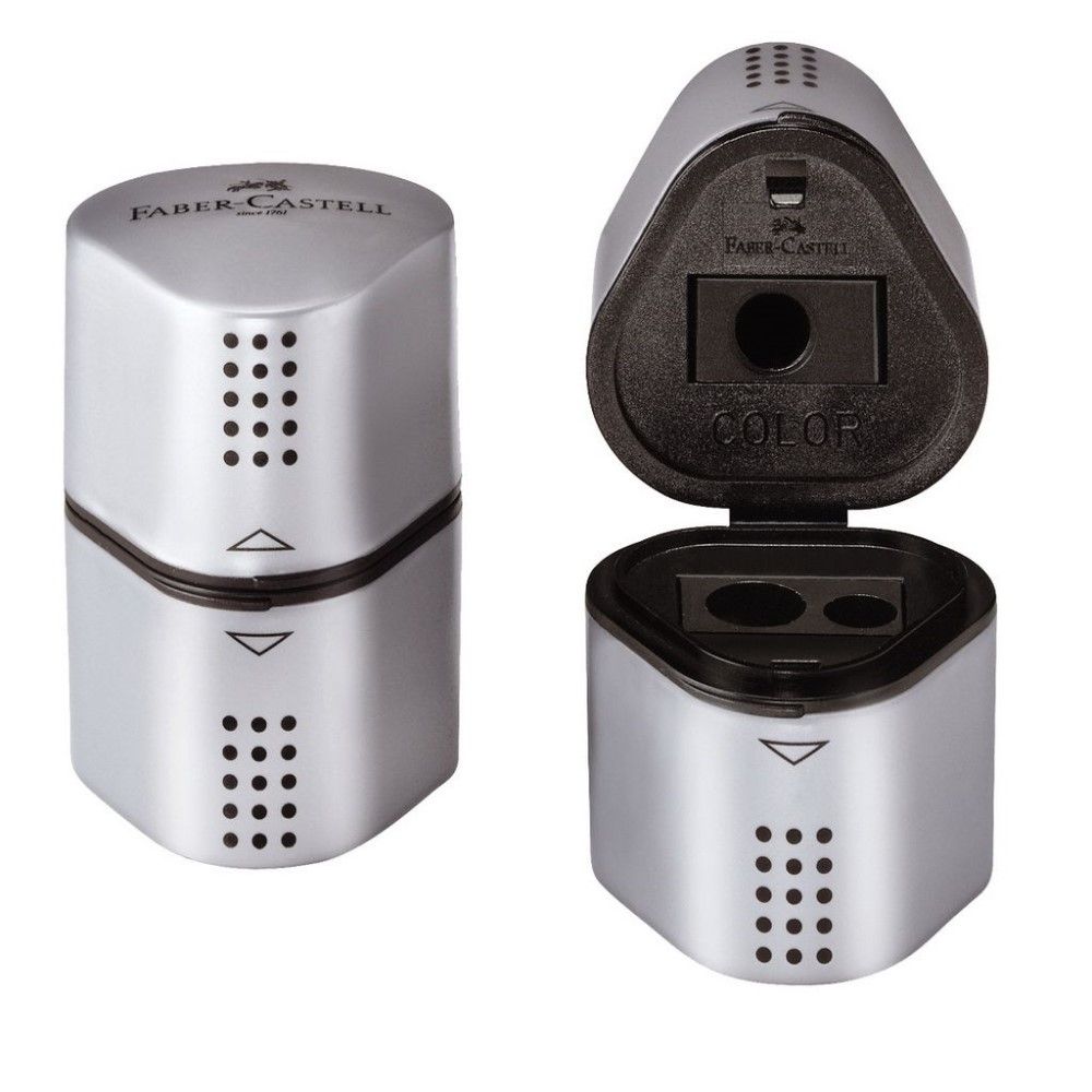 Strúhadlo vyrobené z hliníka. Určené na brúsenie ceruziek a pasteliek. Farba: strieborná