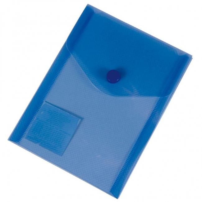 Obal na dokumenty A6 so zapínaním na patentku, vyrobený z kvalitného priehľadného PP materiálu. Farba: modrá.