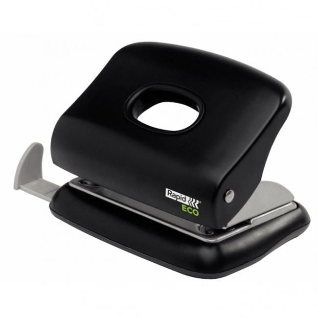 Kompaktný a pritom výkonný dierovač vyrobený zo 100% recyklovaného priemyslového plastu, s obalom vyrobeným z recyklovaného kartónu. Farba čierna.