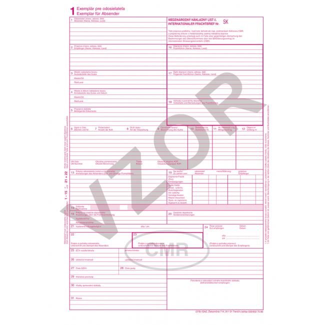 CMR medzinárodný nákladný list A4, samoprepis, 5-listový, /278/ 100 ks v bal.