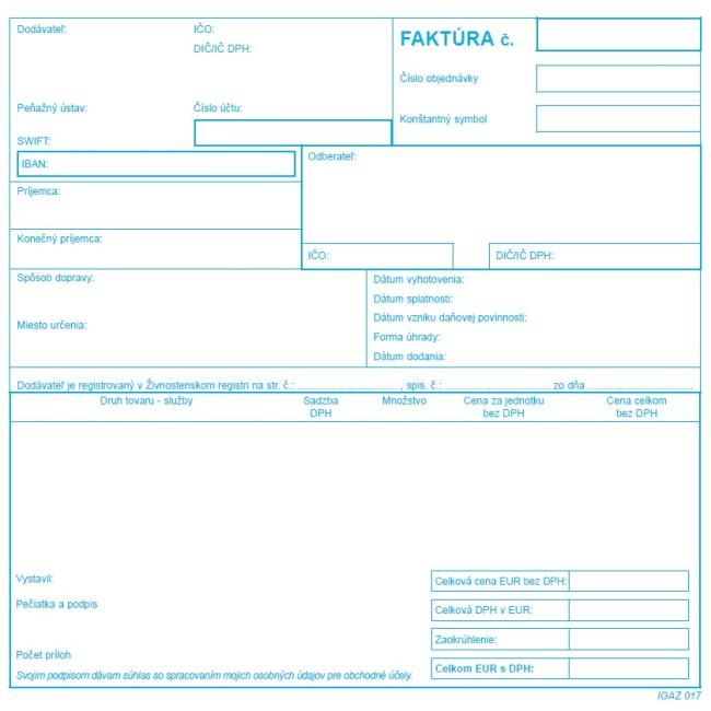 Tlačivo : Faktúra daňový doklad rozmery: 21x20 cm, v balení 100 listov.