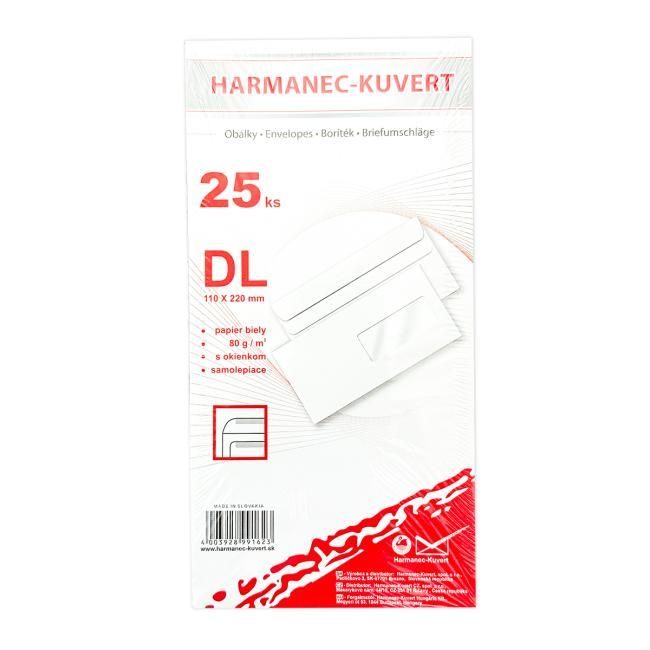 Poštové obálky DL samolepiace, okienko, 25 ks