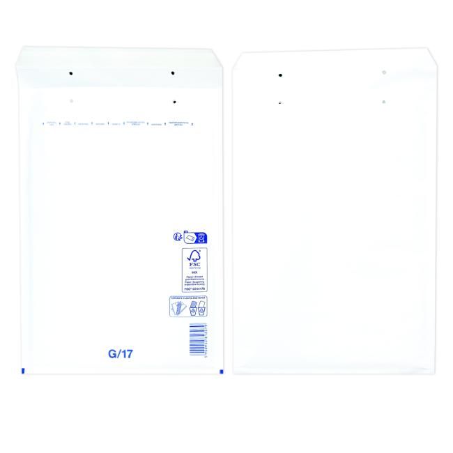 Extrémne ľahké, bezpečné a hospodárne obálky. Jednoduchý spôsob balenia samolepiacim uzáverom. Vďaka špeciálnej fólii s vankúšikmi, plnenými vzduchom a papieru Kraft, potiahnutému polyetylénom, sú obálky elastické a odolné voči roztrhnutiu a vode. Farba biela. Vnútorný rozmer 24 x 34 cm.