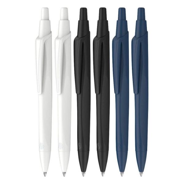Guľôčkové pero s plastovým telom a ergonomicky tvarovaným gumovým úchopom. Priemer hrotu je 0.7 mm. Dodávané vo farbách: modrá, žltá, červená, biela. Náplň modrá. Jednorazová náplň.