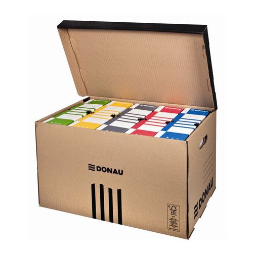 Archívna krabica z trojvrstvovej lepenky gramáže 450 g s certifikátom FSC® (drevo na jej výrobu pochádza z lesov, obhospodarovaných udržateľným spôsobom), bez obsahu kyseliny (pH 7,5). Vhodná na ukladanie a archiváciu archivačných boxov. Rýchlo a ľahko zložiteľná. Bočné otvory na prenášanie, predtlač na popis na bokoch. Dodávaná rozložená. Väčšie balenie 5 ks. Rozmery: 560 × 370 × 315 mm. Kapacita: 6 archívnych boxov so šírkou chrbta 8 cm, 5 archívnych boxov so šírkou chrbta 10 cm, 4 archívne boxy so šírkou chrbta 12 cm, 2 archívne boxy so šírkou chrbta 15,5 cm + 1 archívny box so šírkou chrbta 20 cm alebo 2 archívne boxy so šírkou chrbta 20 cm + 1 archívny box so šírkou chrbta 10 cm.
