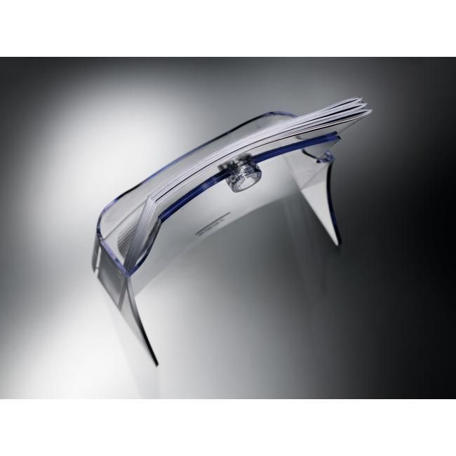 Stolný stojan s jedným odkladačom unikátneho dizajnu z vysokokvalitného akrylu. Ideálny na brožúry, katalógy a letáky. Hĺbka odkladača 30 mm. 25-ročná záruka na odolnosť voči UV žiareniu. Rozmery 170 × 200 × 75 mm. Farba číra.