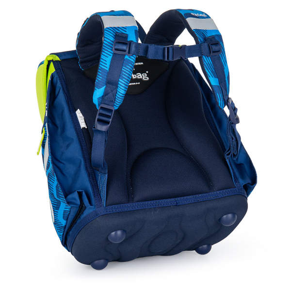 Školská taška navrhnutá v spolupráci s fyzioterapeutom, anatomicky tvarovanou výstužou chrbta, s nastaviteľnými ramennými popruhmi, ktoré nerežú a netlačia. Pevné dno. Horné popruhy, nastaviteľný hrudný popruh, veľká hlavná komora s praktickým rozraďovačom na knihy a zošity, predné vrecko na desiatu a fľašu na pitie, bočné vrecká na zips, kovový zámok s logom a reflexným prvkom, rozvrh hodín, menovka. Vhodné aj pre drobnejšie deti od 121 cm. Hmotnosť 970 g, rozmery 33 × 31 × 18 mm, objem 27 l. Nosnosť 8 kg. 100 % polyester.