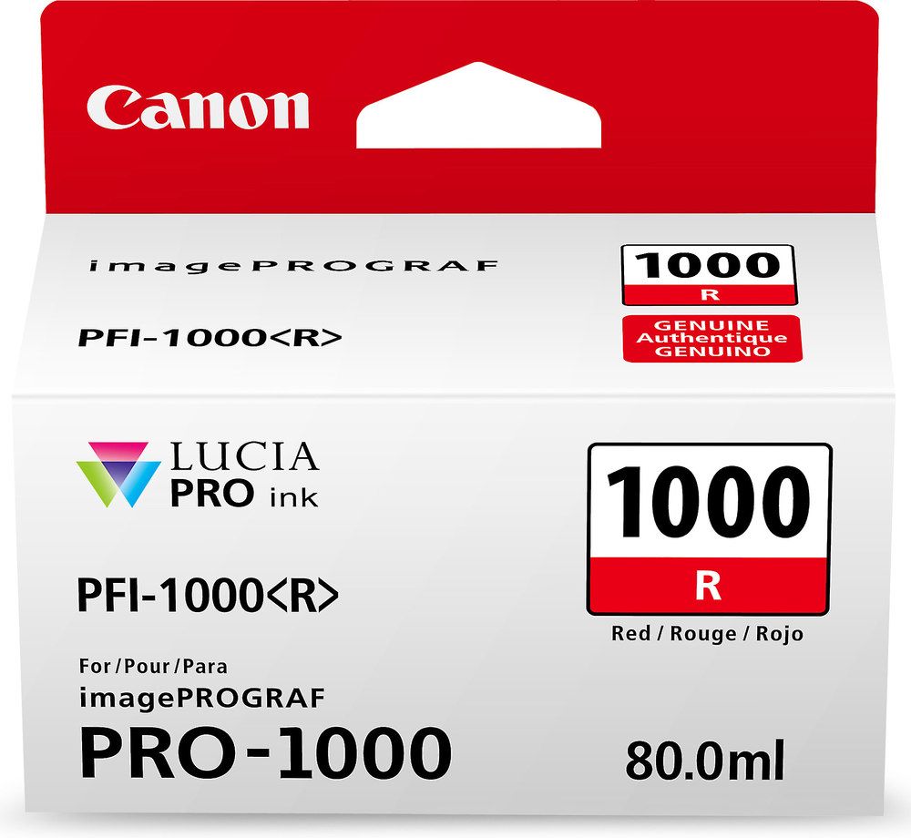 Originálna atramentová kazeta (cartridge) Canon PFI-1000R vo farbe červená (red). Jeho kapacita je 5355 strán. Cartridge od výrobcu Canon spĺňa medzinárodné štandardy, vďaka čomu je garantovaná vysoká kvalita tlače.