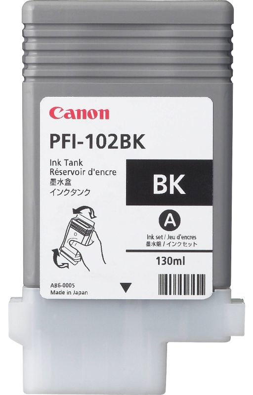 Originálna atramentová kazeta (cartridge) Canon PFI-102BK vo farbe čierna (black). Jeho kapacita je 2200 strán. Cartridge od výrobcu Canon spĺňa medzinárodné štandardy, vďaka čomu je garantovaná vysoká kvalita tlače.