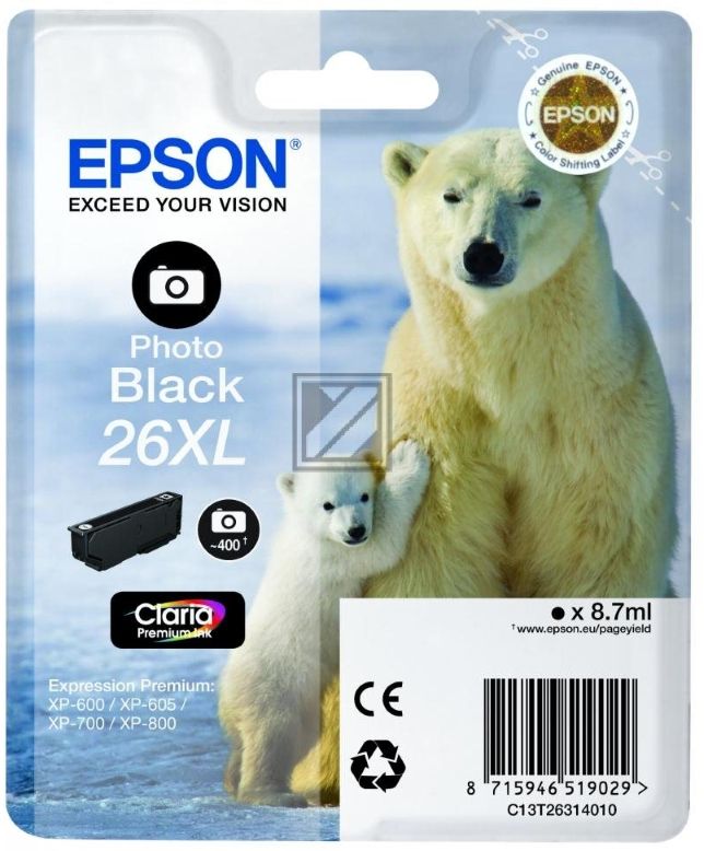 Originálna atramentová kazeta (cartridge) Epson T2631 (26XL), C13T26314012 vo farbe foto čierna (photo black). Jeho kapacita je strán. Cartridge od výrobcu Epson spĺňa medzinárodné štandardy, vďaka čomu je garantovaná vysoká kvalita tlače.