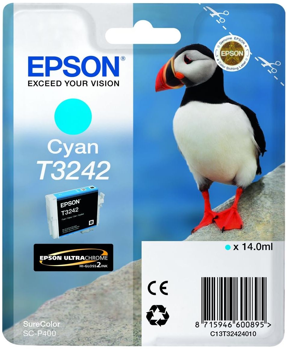Originálna atramentová kazeta (cartridge) Epson T3242 vo farbe azúrová (cyan). Jeho kapacita je 980 strán. Cartridge od výrobcu Epson spĺňa medzinárodné štandardy, vďaka čomu je garantovaná vysoká kvalita tlače.