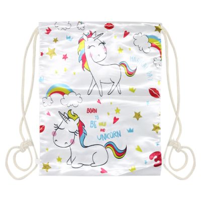 Textilné vrecko na prezuvky s lesklou potlačou “Born To Be Unicorn“ so zarážkami na oboch stranách. Vak je vhodný pre športové využitie aj bežné nosenie.