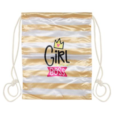 Textilné vrecko na prezuvky s lesklou potlačou “Girl Boss“ so zarážkami na oboch stranách. Vak je vhodný pre športové využitie aj bežné nosenie.