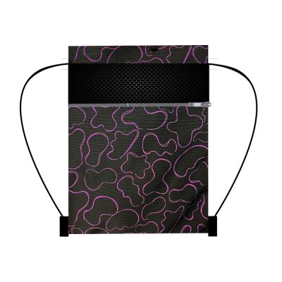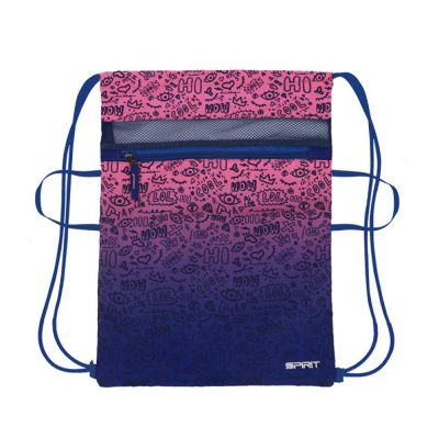 Vrecko na prezúvky alebo športové potreby s farebnou potlačou na prednej strane. možno ho niesť na ramene alebo na chrbáte ako batôžtek zaťahovací vrch pomocou šnúrky materiál: vodeodolný Polyester