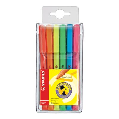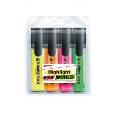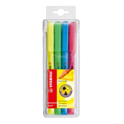 Zvýrazňovač neobyčajného dizajnu s väčším zásobníkom atramentu ako u bežných zvýrazňovačov a technológiou Anti‑Dry‑Out so 4 hodinami ochrany proti vysychaniu atramentu. Odolný voči zmenám atmosferického tlaku, nevytečie, vhodný napr. do lietadla. Atrament na vodnej báze vhodný pre prácu s papierom, kópiami a faxom, rovnomernáspotreba atramentu až do poslednej kvapky. Hrot zrezaný, šírka stopy 2 -5 mm. Dodávaný v sade 4 farieb. Väčšie balenie: 5 sád.