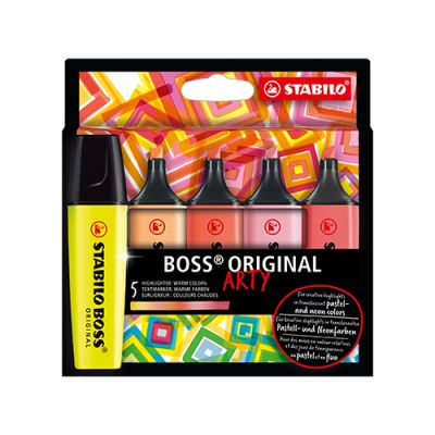 Jedinečný zvýrazňovač v 6 nových pastelových odtieňoch. V 2 šírkach stopy. Vhodný pre prácu s papierom, kópiami a faxom. Vydrží až 4 hodiny bez vrchnáčika a nevyschne. Značková kvalita od vynálezcu zvýrazňovača - BOSS Original je na trhu už od roku 1971. Nezameniteľný tvar zvýrazňovača, ktorý je možné použiť kdekoľvek. Sada 8 ks.- Neporovnateľná dizajnová klasika - od roku 1971 - STABILO vysokokvalitný atrament zaisťuje vynikajúci komfort pri písaní - STABILO Anti-Dry-Out Technológia: 4 hodiny ochrany proti vyschnutiu bez viečka a pre plnú koncentráciu na prácu - STABILO BOSS ORIGINAL Náplň - šetrná ku zdrojom a znovu naplniteľná- Dostupné v 19 farbách - 9 fluorescenčných a 10 pastelových farieb - 2 šírky stopy: 2 mm a 5 mm - skvelé pre ručné písanie a bullet journal