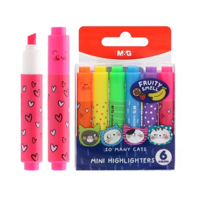 Zvýrazňovače v mini prevedení v 5 farbách: ružová, modrá, žltá, fialová, oranžová a zelená.