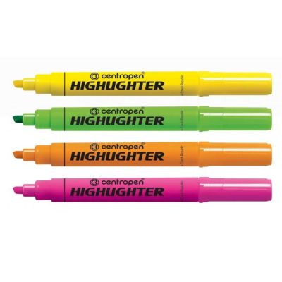 Zvýrazňovač je od značky CENTROPEN, patrí pod kategóriu FAX. Zvýrazňovač má klinový hrot na písanie. Farba tela sa zhoduje aj s farbou atramentu vo zvýrazňovači. To je žltá fluorescenčná farba. Je dokonca obdarený funkciou proti vyschnutiu po dobu 3 rokov. Je vhodný na všetky druhy papiera, dokonca aj kopírovací aj faxovací. Šírka stopy zvýrazňovača je 1 až 3 mm.